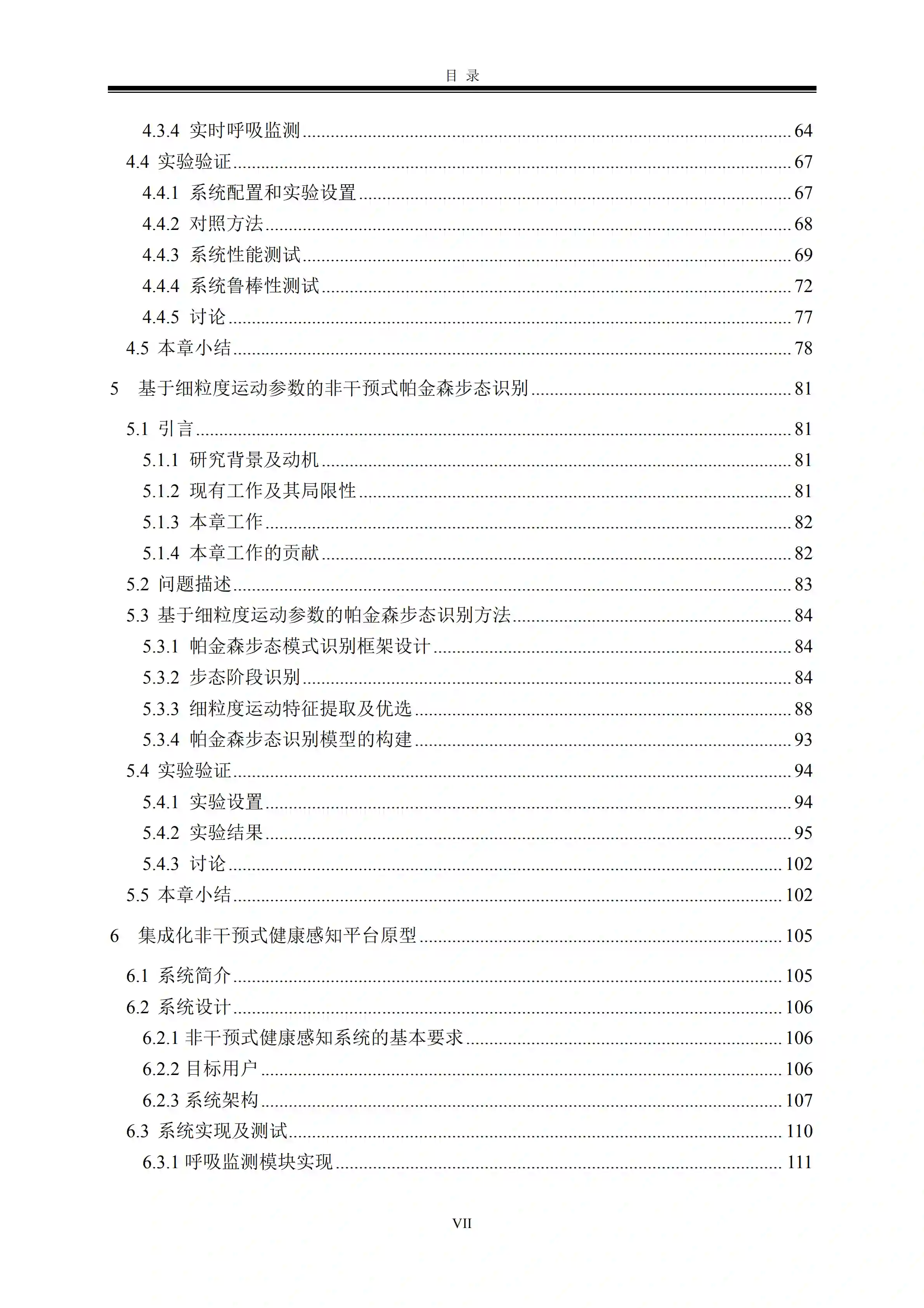 论文摘要:现有新型体征感知方法在非干预性、可普及性、准确性、适应性等方面尚存在不同程度的不足,难以支撑日常生活环境下长期健康监测的需求。基于此,本文研究日常生活环境下的非干预式体征感知若干关键技术,具体包括:非接触式睡眠呼吸监测、非干预式行走步态感知与分析。本文主要工作和取得成果包括如下几个方面: