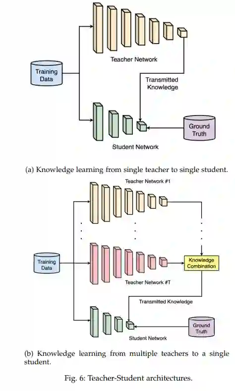 第二节描述了针对不同学习目标的师生架构,包括知识蒸馏、知识扩展、知识适应和多任务学习。第三部分介绍了在学习过程中知识是如何构建和优化的。第4节分别讨论了单个和多个教师网络的各种学生网络;第五部分进一步介绍了师生网络的在线学习和自学方案。第6节总结了针对不同目的的师生体系结构的最新应用。未来的工作和结论将分别在第7节和第8节中得出。