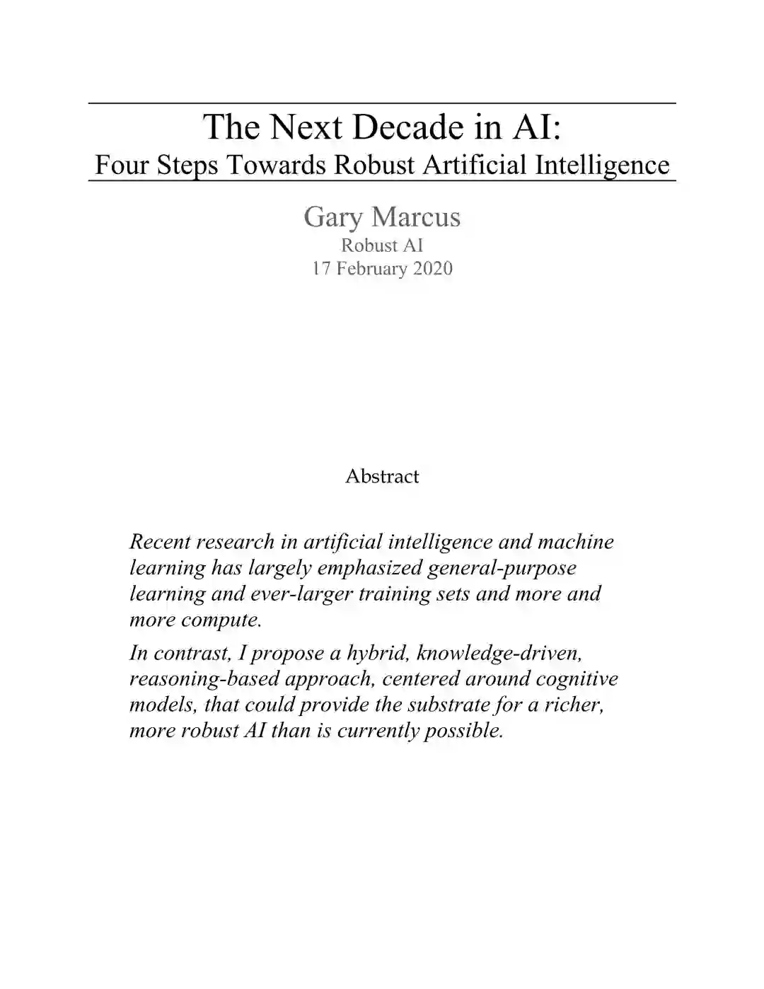 我提出了一个四步走方案:首先完善神经-符号混合架构,然后是建立丰富的、具有认知能力的框架和大规模的知识数据库,随后进一步开发能够用在此类框架上进行抽象推理的工具,最后,发展更复杂的认知模型和归纳机制。综上所述,这四个先决条件的进展可以为更丰富、更智能的系统提供基础。我认为这将重新定义我们学习的意义,产生一种(也许是新的)学习方式,通过抽象的、类似语言的归纳,从数据到知识和认知模型,将推理真正作为学习过程的一部分。