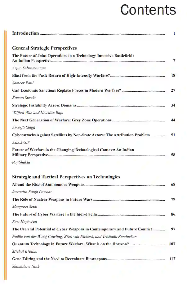 随着全球和亚洲的力量平衡处于战略变化的状态,竞争、对抗和冲突--无论是暴力还是其他--再次成为中心议题。此外,在技术创新的推动下,随着新兴和关键技术的出现,战争的战术、战略和媒介也可能发生变化。网络战、空间武器化、代理战争和影响行动以及错误信息运动的重要性日益增加,这表明作战模式正在发生变化。随着人工智能(AI)、量子、网络、空间和生物技术等技术的发展和进步,未来的战场可能无法识别。