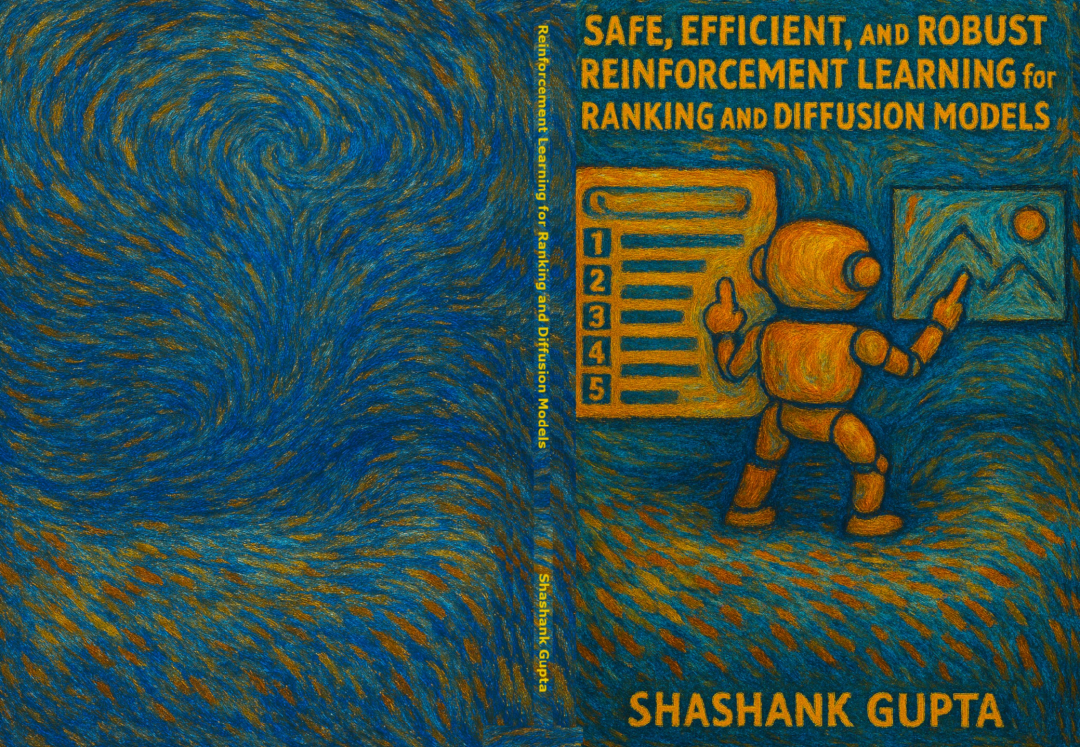 本论文研究如何设计强化学习(Reinforcement Learning, RL)方法,使其具备安全性(safety)样本效率(sample efficiency)鲁棒性(robustness)。在**上下文多臂赌博机(contextual-bandit RL)**的统一视角下,本研究聚焦于两个主要应用领域: 1. 排序与推荐系统(ranking and recommendation), 1. 文本到图像扩散模型(text-to-image diffusion models)