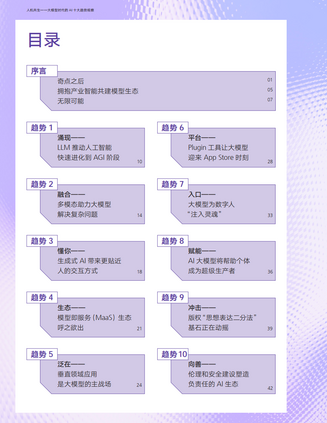 在商业模式方面,大模型促进了AI的工业化,并且正在重构现有的商业模式,未来将形成模型即服务的MaaS生态。报告显示,未来的数字化商业将分为大模型基础设施型企业、垂直行业领域的小模型应用企业,以及更加贴合个人用户的模型应用和服务。这一生态的建立和发展,将更广泛地赋能各行业应用,加快社会各领域数字化转型、智能化发展,带来全社会的生产效率提升。