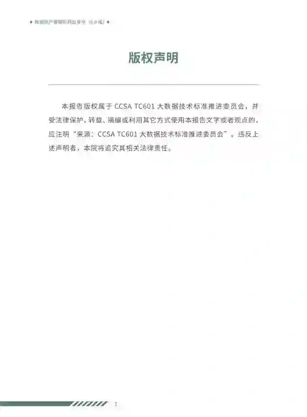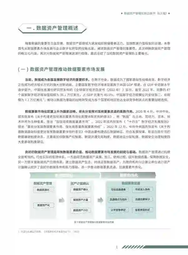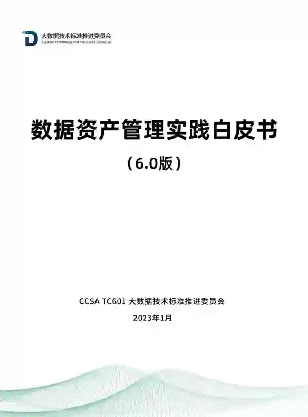 来源:CCSA TC601大数据技术标准推进委员会 日前,《数据资产管理实践白皮书(6.0版)》正式发布。白皮书是大数据技术标准推进委员会在数据资产管理领域的系列研究报告,从2017年开始已连续6年发布,成为了国内数据资产管理的“风向标”。 《数据资产管理实践白皮书(6.0版)》在《数据资产管理实践白皮书(5.0版)》的基础上,结合2022年数据资产管理领域政策和行业动向,持续跟踪各行业典型方法和实践案例,更新了数据资产管理的理念和方法,对数据资产管理领域的发展现状和趋势进行了总结,有助于企业了解自身所处的发展阶段,更好的拟定下一步建设思路。 目前,数据是资产已成为共识,数据资产管理理论框架日趋成熟,越来越多的企业开展数据资产管理工作,推动企业数字化转型。但是与此同时,我们也应认识到多数企业仍停留在数据资产管理发展初期,仍然面临数据资产管理内驱力不足、数据资产管理与业务发展存在割裂、数据资产难于持续运营等问题。 为指导企业解决以上问题,本白皮书总结了数据资产管理活动职能的核心理念与实践要点,提出了战略规划、组织架构、制度体系、平台工具、长效机制五大数据资产管理保障措施,提倡企业体系化开展数据资产管理工作,提升数据资源化效率,创新数据资产化模式,引导企业充分融入数据要素市场发展,加速数据资产价值释放。 什么是数据资产?