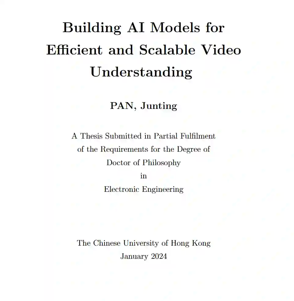 本文提出了旨在解决视频理解任务中效率和可扩展性挑战的创新方法。本研究的第一个贡献是引入了一种新颖的视频分类迁移学习方法,称为时空适配器(ST-Adapter)。通过利用ST-Adapter,可以用最少的参数变化和更新,将图像基础模型适应于动作识别任务。这种方法显著提高了图像到视频迁移学习的效率。第二个贡献是引入人物场景关系的视频动作检测网络,称为ACAR-Net。ACAR-Net旨在学习和编码关系特征,从而显著提高动作检测性能。值得注意的是,这是在不需要显式关系和物体标注的情况下实现的。我们做出的第三个贡献是针对零样本视频问答(VideoQA)的检索回答(R2A)框架。R2A框架旨在通过结合访问外部知识源来增强现有的多模态模型。这种设计选择使模型的知识源和组件能够以可扩展和可持续的方式进行最小成本的更新。最后,我们通过生成方法探索视频场景理解。我们的贡献在于一个两步式生成框架,将这一复杂任务分解为两个更简单的子问题。在第一阶段,我们仅生成高质量的第一帧。在第二阶段,我们根据场景的语义含义对场景进行动画化,以获得时间上连贯的视频,从而取得了高质量的视频生成结果。通过所提出的框架,静态和动态内容可以以循序渐进的方式实现,从而大幅度提高了生成质量。