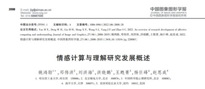Minsky(1970 年图灵奖获得者) 曾指出,“问题 不在于智能机器是否会有情感,而是没有情感的机 器能否智能” (Minsky,1986)。 情感在机器和人工 智能领域起到至关重要的作用,能够影响人们的判 断与决策。 随着移动相机和社交平台的广泛普及, 人们习惯于用图像、视频和文字等多媒体数据在线 分享和表达自己的观点(Zhao 等,2020b)。 识别这 些数据中的情感内容,可以帮助理解用户的行为和 情感。 “一图胜千言”,图像可以传递丰富的语义信 息。 情感图像内容分析(affection image content analysis,AICA)的目标是理解认知层次的语义信息,识 别图像对特定观看者或大多数人会诱发的情感 (Zhao 等,2021)。 使用 AICA 自动地推断人们的情 感状态,可以帮助检测他们的心理健康、发现情感异 常,阻止他们对自己、甚至对整个社会进行的极端行 为(Zhao 等,2021)。 情感图像内容分析(AICA)在心理学和行为学 的研究基础上出现,例如基于 IAPS(International Affective Picture System)数据集研究视觉刺激与情感 之间的关联(Lang 等,1997;Mikels 等,2005)。 早期 情感图像内容分析的方法多是基于手工设计的特 征,例如低层次的全局 Wiccest 和 Gabor 特征(Yanulevskaya 等, 2008 )、 艺术元素 ( Machajdik 和 Hanbury,2010)、中层次的艺术原理( Zhao 等,2014) 和 高层次的形容词名词对(Borth 等,2013)。 2014 年, 研究者将大规模数据集上预训练的卷积网络参数迁 移到 AICA 领域(Xu 等,2014)。 为了解决情感感知 的主观性问题,研究者们提出了个性化情感预测 (Xu 等,2014;Yang 等,2013;Zhao 等,2016;Rui 等, 2017 ) 和 情 感 分 布 学 习 ( Zhao 等, 2015, 2017c, 2020a;Peng 等,2015) 策略。 近几年,领域自适应 (Zhao 等,2018b,2019b;Lin 等,2020)和零样本学习 (Zhan 等,2019) 也应用到 AICA 领域,来解决情感 标签缺失问题。