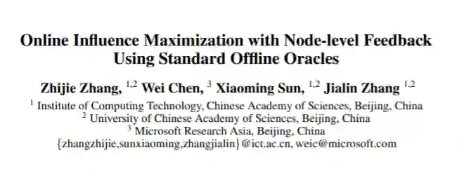 论文摘要:本文研究在线影响力最大化问题:玩家与未知社交网络进行多轮交互,每轮需要选取种子集合投放信息,观察信息传播过程的反馈数据,据此学习网络参数并更新选取策略,最终最小化多轮交互的累积悔值。本文针对独立级联(IC)和线性阈值(LT)传播模型,各自设计了一个基于点反馈并且使用标准离线黑箱算法的最优悔值在线算法,改进了之前IC模型下基于边反馈的算法和LT模型下使用非标准黑箱的算法。本文提出变种极大似然估计方法,并定义伪似然函数,以辅助参数估计。本文的分析能够针对每个网络参数得到一个置信区间。