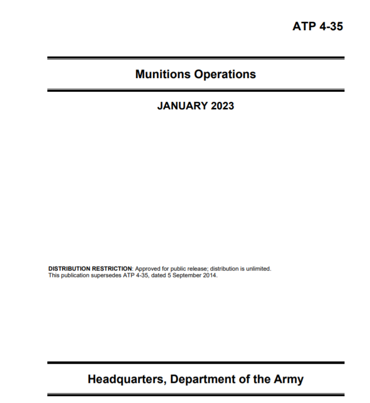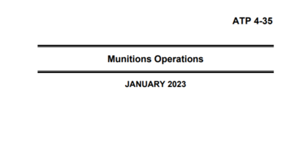 ATP4-35提供了弹药行动的条令。弹药行动包括弹药的问责、储存和分配。本手册提供了关于美陆军部队和弹药行动的作用和功能信息。