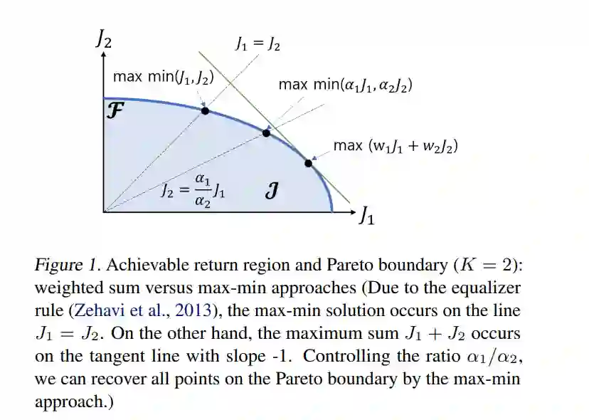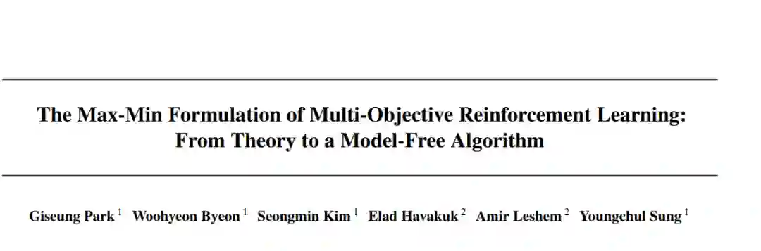 在本文中,我们考虑了多目标强化学习,这在具有多个优化目标的许多实际问题中出现。我们采用最大-最小框架来解决这一问题,重点关注多个目标之间的公平性,并在最大-最小框架下开发了相关理论和实用的无模型算法。所开发的理论在多目标强化学习方面提供了理论上的进步,而提出的算法在性能上显著优于现有的基准方法。