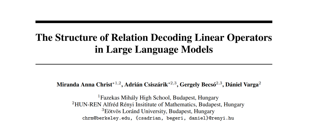 本文研究了 Hernandez 等人(2023) 所提出的、能够在 Transformer 语言模型中解码特定关系事实(relational facts)线性算子(linear operators)的结构特征。我们将其原本针对单一关系的研究扩展至多种关系的集合,并系统性地描绘了这些线性算子的组织结构。 研究表明,这类关系解码算子集合可以通过简单的三阶张量网络(order-3 tensor networks)进行高度压缩,而几乎不损失解码精度。为解释这种出人意料的冗余性(redundancy),我们提出了一种交叉评估协议(cross-evaluation protocol):将每个线性解码算子应用于其他关系的主语(subject),以考察它们的泛化与重叠性。 实验结果显示,这些线性映射并非分别编码了彼此独立的关系,而是提取出反复出现的、较为粗粒度的语义属性(coarse-grained semantic properties)。例如,“首都所在国家(country of capital city)”与“食物所属国家(country of food)”都属于同一类更一般的“国家归属(country-of-X)”属性。 这种以属性为中心(property-centric)的结构不仅解释了这些算子的可压缩性,也揭示了它们仅能泛化到语义上相近的新关系的原因。因此,我们的研究指出,在 Transformer 语言模型中,**线性关系解码机制主要基于属性(property-based)而非特定关系(relation-specific)**的结构原理。