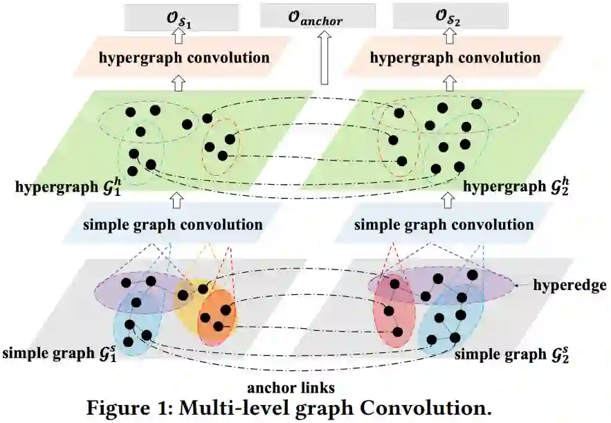 我们提出了一个新的框架,用于预测跨不同社交网络的锚链接这一具有挑战性的任务。该方法同时考虑了局部和超图级的图卷积来学习网络嵌入,能够为任务捕获更广泛、更丰富的网络信息。