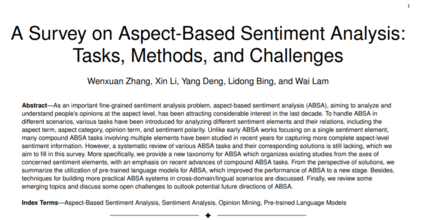 方面级情感分析是大家关注的一个问题,最近来自香港中文大学的学者发布了最新《基于Aspect的情感分析综述论文》系统介绍了ABSA方法体系。