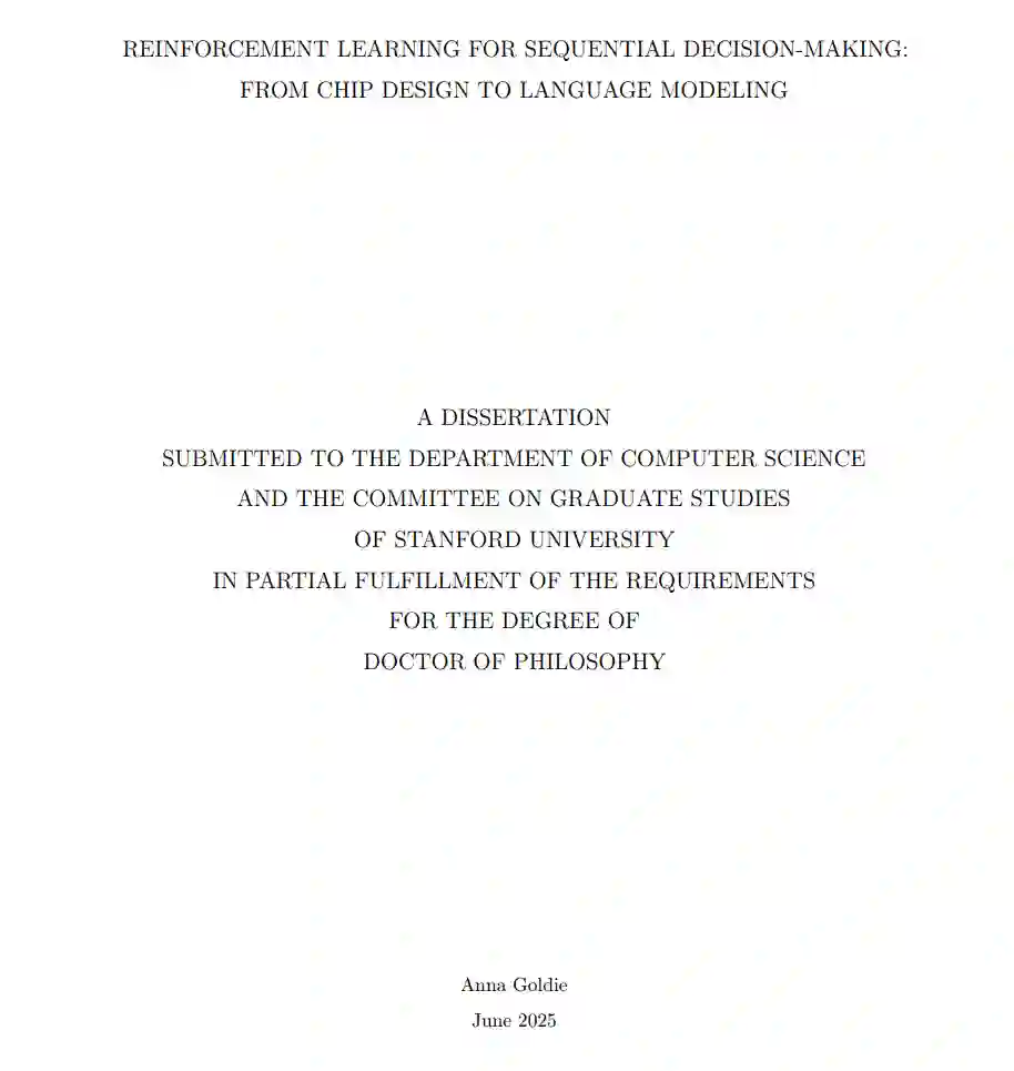 强化学习(Reinforcement Learning, RL)方法在模拟环境和游戏中已取得显著成果,但直到最近才开始被应用于解决现实世界的问题。这在一定程度上是因为强化学习方法本身存在不稳定性、样本效率较低,以及在现实任务中难以将奖励准确归因到长序列中的具体步骤等挑战。为应对这些问题,本论文提出了一系列方法,涵盖问题建模、表征学习、有效的奖励归因机制,以及高质量多步轨迹的可扩展构建。 为了将这些理论原则落地,我将介绍两类能够解决现实世界挑战的强化学习智能体,分别应用于两个截然不同的领域:芯片设计与语言建模。 首先,我将介绍 AlphaChip,这是一种深度强化学习方法,能够在数小时内生成超越人类水平的芯片布局,而不再需要人类耗时数周甚至数月的设计过程。AlphaChip 是最早部署于现实工程问题的强化学习方法之一,已被用于设计过去四代 Google TPU 芯片的布局,同时也被 Alphabet 内部和外部的芯片制造商广泛采用。 接下来,我将介绍 Step-Wise Reinforcement Learning(SWiRL),这是一种结合强化学习与合成数据生成的方法,可提升大型语言模型(Large Language Models, LLMs)在多步推理和工具使用方面的能力。 最后,我将提出一个用于评估基于LLM的强化学习智能体在复杂多步推理任务中性能的新数据集,并探讨该前沿领域中的若干开放问题与未来机遇。