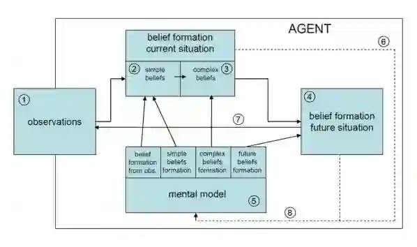 另一个重要的方面是在苛刻的环境下可能出现的SA的退化。当时间有限时,感知和线索的整合会受到影响,导致对环境的不完整了解。此外,由于工作记忆的限制,人类并不总是能够进行所有必要的观察。根据可用时间的多少,可以通过考虑不太活跃的信念来进一步完善对情况的了解。这些特点反映在智能CGF的行为中。上述模型的详细描述可以在Hoogendoorn, Lambalgen and Treur (2011)中找到。
