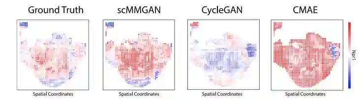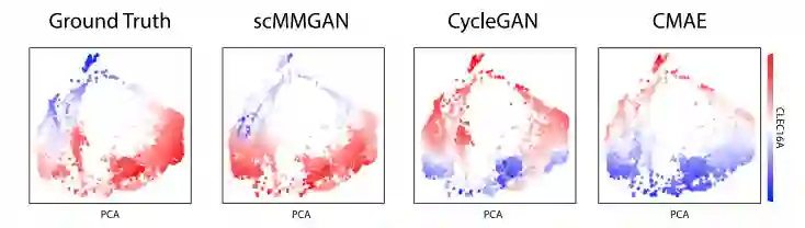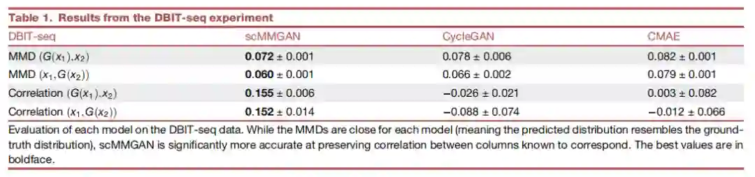 3 总结与讨论 在这项工作中,作者证明了scMMGAN可以将来自相关实验但不同模态的数据以一种通过学习映射的方式最好地保留原始细胞的属性。在scMMGAN的架构中增加了对应损失,解决了在学习映射时只说明分布级损失而产生的模糊性。这适用于各种数据类型和模式、分布形状以及实际生物实验中出现的其他设置。