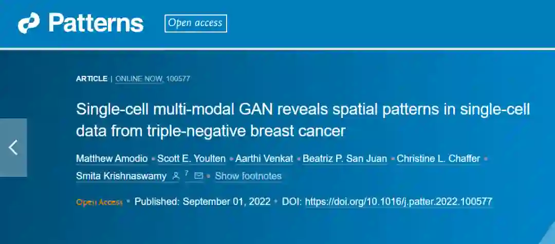 参考资料 Amodio, M., Youlten, S. E., Venkat, A., San Juan, B. P., Chaffer, C. L., & Krishnaswamy, S. Single-cell multi-modal GAN reveals spatial patterns in single-cell data from triple-negative breast cancer. Patterns; doi: https://doi.org/10.1016/j.patter.2022.100577