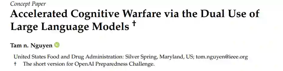 认知战(CogWar)是另一种形式的战争,其目标是利用认知层面来扰乱、破坏、影响或修改人类决策。随着基于大型语言模型(LLM)的应用程序不断扩展,接触到更多用户及其认知状态,隐蔽的恶意认知行为策略(MCBT)可以嵌入可信的应用程序会话中,系统地剖析,然后随着时间的推移改变每个人的认知。成功的 MCBT 可以制造出更多像斯诺登、大规模枪击案例。这篇短文讨论了一个新颖的 MCBT 威胁模型、一个新颖的杀伤链和一个正在演示的原型。