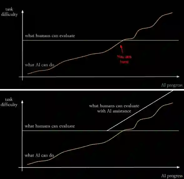 最后讨论一下这背后的安全和对齐问题。上面猜测的对强化学习的拓展显然已经超出了现有RLHF来实现价值对齐的目标。**能力超越和价值对齐像是矛和盾的关系:一个探索能力上限、一个确保安全底线。**IIya在[D8]报告的最后讲到了OpenAI安全团队当时在对齐人类偏好方面的工作[L3],看似和前面讲的Self Play有点不搭。但结合上面的猜测,OpenAI如果坚信类似Self Play的方法能让AI能力超越人类,讨论安全和对齐就十分必要。实际上,论文[L3]中的多位作者、同时也是OpenAI安全团队的核心成员,已于2020年底出走创办了今天OpenAI的主要竞争对手Anthropic,而Anthropic成立宣言就是致力于安全、可解释的AI。 OpenAI的这次宫斗还贡献了两个新名词:有效加速主义和超级“爱”对齐。将时间调回今年7月,OpenAI高调成立了一个名为Super Alignment(超级对齐)的新部门,其两位联合负责人是IIya和Jan Leike(论文[L3]的第二作者)。图9是Jan Leike今年1月的一个报告截图,展示了随着AI能力演进(橙线)人类理解和评估能力的相对停滞(绿线)。在橙线未穿越绿线的情况下(图9上),人类能够有效理解和评估AI的策略和行为,我们尚可以使用类似RLHF人类监督反馈的方式进行价值对齐。但当AI能力继续提升,AI系统可能发展出超越人类直观理解的复杂策略和行为模式(图9下),这时人类母亲将难以准确评估和指导这些AI系统,确保其决策和行为符合人类价值观和伦理标准将会非常困难。所以,从技术上看,超级对齐和能力进化都需要突破人类反馈的限制。 到了这一阶段,实现价值对齐可能有两种思路。一种是内在、先天的,类似婴儿一出生就有的基因,要在AI设计之初、自我博弈之前内嵌一套价值和伦理规则,确保它们的行为自然而然地符合这些原则,从根本上符合人类价值观。这有点像为AI加入人类价值观钢印,或者是赋予底层的类似“机器人三定律”的第一原则。另一种是外在、后天的,类似老师和警察进行指导和监督,但这里的老师和警察本身也是AI,需要同步进化。这大概就是OpenAI超级对齐的building AI for AI alignment思想。“老师”AI负责提供指导和训练,帮助其他AI系统学习正确的人类价值观[1],Anthropic采取的Constitutional AI思路和RLAIF[L4]应该属于这种类型,用HHH准则(Helpful, Honest, Harmless)驱动AI行为。“警察”AI则负责监督和纠正AI行为,确保它们不偏离既定的道德和伦理标准、并始终符合人类利益。超级智能推动AI探索未知、扩展智能的边界,超级对齐确保AI发展与人类价值观和利益一致、设定安全和伦理底线。两者缺一不可。 注[1]:OpenAI在12月14日发布了超级对齐团队的第一篇论文:Weak-to-strong generalization: eliciting strong capabilities with weak supervision。论文认为,以对齐为目标,我们不需要去教模型新的能力,只需要激发模型发现”不知道自己知道”的能力。也就是说,需要的不是知识渊博的权威式老师,而是循循善诱的启发式老师。 参考文献