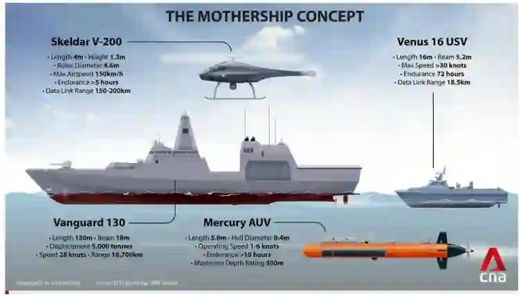 图 3:母舰概念 Aqil Haziq Mahmud,"潜艇猎手,侦察领导者:海军母舰及其无人系统能做什么",亚洲新闻频道 CAN,新加坡: 2019 年 5 月 19 日。