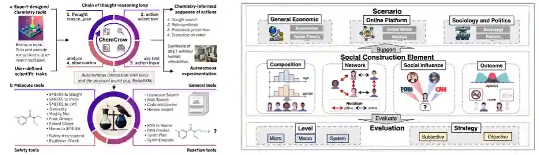 LLMs 作为模拟实验主体:在社会科学研究中,LLMs 被用于模拟人类参与者的行为和决策,构建可扩展且可控的人机交互实验环境[31]。这种范式能显著降低传统实验所需的人力与时间成本,为研究社会动态、经济行为等提供高效平台。