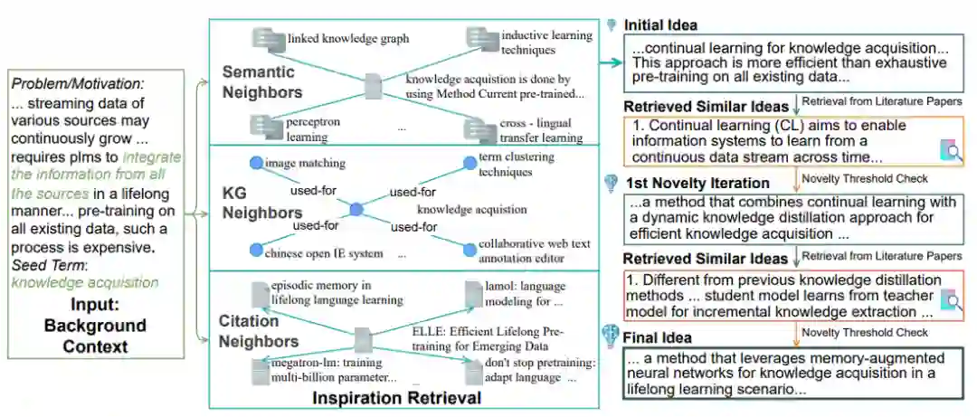 这一阶段主要围绕假设形成的流程展开。它始于对领域知识的全面理解,随后确定一个特定方面并提出相关假设。本节进一步分为两个关键部分:知识整合和假设生成,对应人类研究员科研过程中背景知识的获取以及想法的提出。
