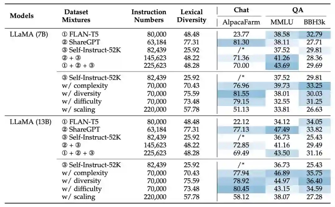 在适配技术章节,我们增加了大量讨论及实验分析。在指令微调部分中,我们新增了指令微调的实用技巧介绍。在指令微调实验部分,我们加入了LLaMA-13B模型的指令微调实验针对不同混合数据集的分析。 在对齐微调部分中,为了帮助研究者快速有效地实现RLHF,我们提供了RLHF实用策略的介绍,主要包括如何有效地训练奖励模****型、以及如何高效地进行强化学习训练,希望为后续研究人员提供建设性参考。此外,我们大幅增加了对现有非RL对齐方法的介绍。与RLHF方法采用人工方式收集反馈数据不同,这部分工作主要借助奖励模型与大模型进行自动化的对齐反馈数据收集,并采用较为多样的监督训练方式微调大模型。最后,我们还针对SFT和RLHF两种训练方法进行了讨论。