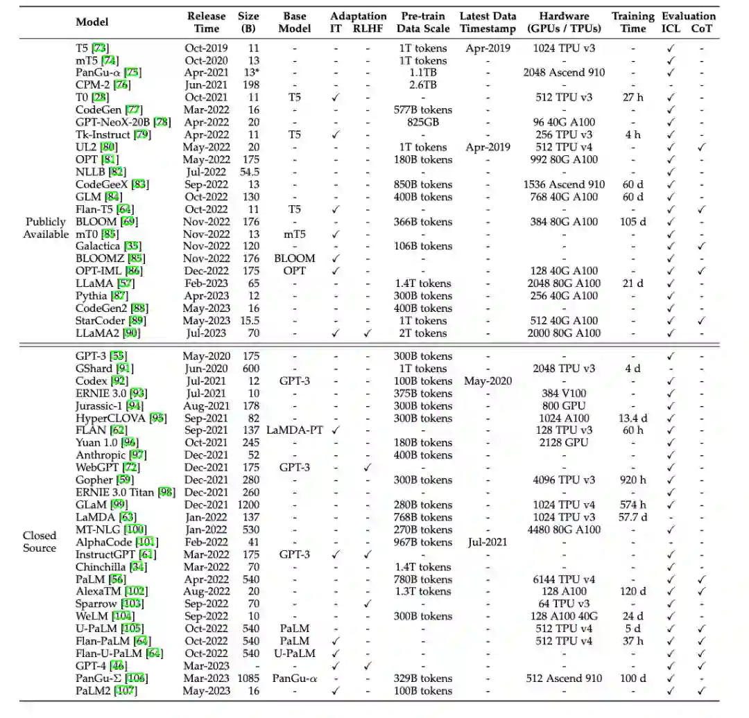 我们对于最新符合条件的模型进行了补充,持续更新了现有的10B+的模型图和表格(如有遗漏,欢迎读者来信补充):