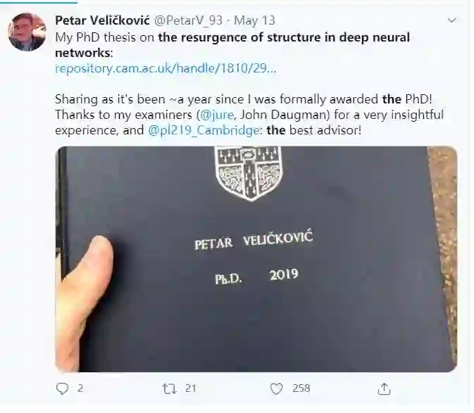 【导读】图神经网络依然是当下的研究热点之一。DeepMind研究科学家Petar Veličković在Twitter上开放了自己的剑桥大学博士论文《深度神经网络结构的》,共有147页pdf,里面涵盖了出名的图神经网络GAT和Deep Graph Infomax的经典工作。