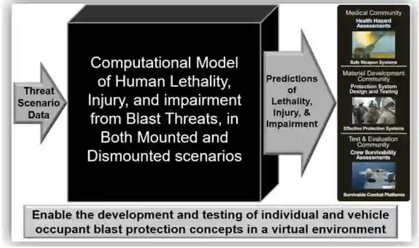 1)计算建模能力的框架,可以预测所有作战场景中所有爆炸威胁对人类的致命性、伤害和损害。