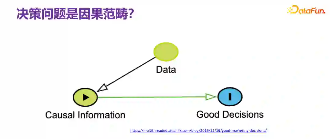 在谈到决策问题时,通常都会直接把决策问题和因果挂钩,所谓决策,就是要做一个什么样的决定,肯定要问为什么做这样一个决定,很明显存在因果链条,在学界很多学者的共识是:要解决决策问题,是绕不开因果的,也就是要从可观测的数据(observational data)上来去获取足够的因果关系信息(causal information),并理解相关的因果机制(causal mechanism),然后基于因果机制再去设计最终做决策的一些策略。如果能够把整个过程都理解得很透彻,就能完美地复原整个因果机制,这样决策就不是问题,因为实际上相当于具有了上帝视角,就不存在做决策的挑战。