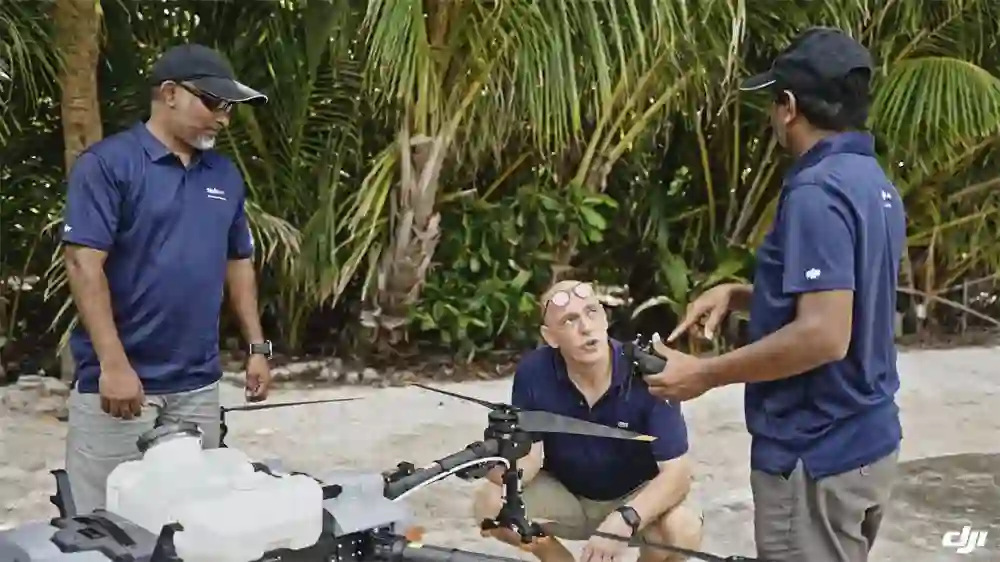 诺尔斯博士带领团队在马尔代夫使用T30 农业无人机进行精准喷洒在病虫害防护上,无人机可以设置全田自动飞行和拍摄航线,对田间进行高密度采样拍照,并把拍摄到的照片输入到病虫害识别 AI 模型,从而自动监测病虫害,并把病虫害位置和等级通过软件呈现给管理人员。无人机将识别到的病虫害发生热点可以生成点喷处方图,下发给农业无人机进行点喷作业,相比传统的全田喷施做法,在达到有效防治的情况下,也可以大量减少虫害。除了病虫害精准点喷,无人机也可对作物整体长势进行监测,并进行营养液的变量喷施。