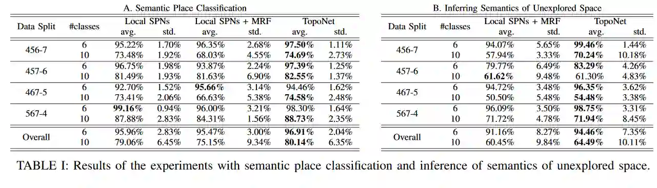 我们介绍了拓扑网,这是一种端到端的概率深度网络,用于对反映大规模环境拓扑结构的语义映射进行建模。TopoNets构建了一个跨越多个抽象层次和空间尺度的统一深度网络,从表示局部几何位置的像素到对建筑语义的高级描述。为此,拓扑网络利用以任意动态图表示的复杂空间关系。我们演示了如何使用TopoNets来执行端到端的语义映射,从部分感官观察和嘈杂的拓扑关系发现的机器人探索大型办公空间。由于它们的概率性质和生成特性,TopoNets将语义映射的问题扩展到了分类之外。我们证明了拓扑网络能够成功地对未知空间进行不确定推理,并检测出机器人未知的新奇的和不一致的环境配置。我们的TopoNets实现了实时的、可处理的和精确的推理,这使得这些新的深度模型成为移动机器人空间理解的一个有前景的、实用的解决方案。