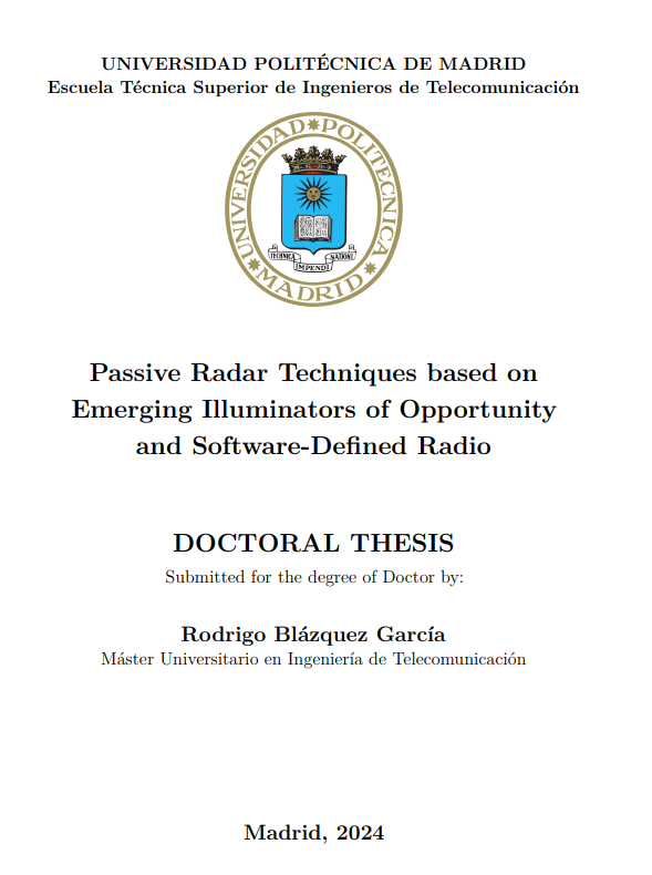 新型无线通信系统的部署,如新一代移动通信(即长期演进(LTE)和 5G)或低地轨道(LEO)通信卫星群(如 Starlink 或 OneWeb),为利用这些传输作为机会照明来开发具有增强功能的无源雷达提供了新的可能性。因此,本论文的重点是分析、开发和实验验证可利用这两种新兴照明设备的无源雷达技术: (i) LTE 移动通信系统,主要应用于城市或半城市地区;(ii) 新型宽带通信低地轨道卫星星座,如 Starlink 或 OneWeb,被认为对偏远地区的应用具有重大意义。此外,作为开发和验证无源雷达原型的有利技术,还考虑了新型商用现成(COTS)软件定义无线电(SRD)设备。