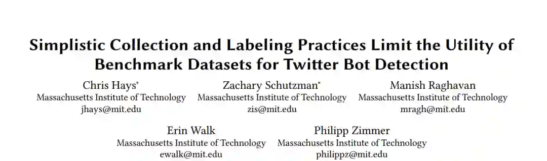 简化的收集和标记方法限制了用于推特机器人检测的基准数据集的实用性。