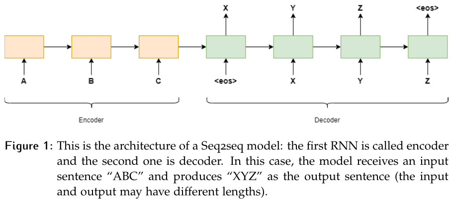 Seq2Seq 模型 在很长一段时间里,条件文本生成是基于Seq2Seq模型[1]的。Seq2Seq背后的思想是由两个递归神经网络(RRN)组成的,它们试图从前一个状态序列预测下一个状态序列(这两个神经网络分别接收编码器和解码器的名称)。扩展最广的两个RNNs是由Sepp Hochreiter和Jurgen Schmidhuber[2]于1997年引入的LSTM和Junyoung Chung等[3]于2014年引入的GRU。然而,用RNNs生成的文本远非完美:它们往往是废话,有时还包含拼写错误。基本上,一个错误的预测就有可能使整个句子变得毫无意义。此外,由于神经网络需要以序列的形式处理数据,因此不可能并行化处理。