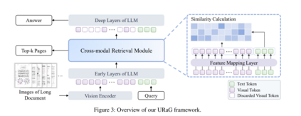 当前的多模态大语言模型在处理长文档理解任务时,仍面临两大根本性挑战:海量无关内容造成的信息干扰,以及基于Transformer架构的二次计算复杂度。现有方法主要分为两类:通过令牌压缩牺牲细节粒度的方法,以及引入外部检索器导致系统复杂性增加且无法端到端优化的方案。 为突破这些限制,我们通过深入分析发现:MLLMs呈现出类人的从粗到细推理模式——早期Transformer层广泛关注文档整体内容,而深层网络则聚焦于相关证据页面。基于这一发现,我们提出可以显式利用MLLMs固有的证据定位能力,在推理过程中执行检索操作,从而实现高效的长文档理解。 为此,我们提出了URaG——一个简单而有效的统一检索生成框架。该框架通过引入轻量级跨模态检索模块,将早期Transformer层转换为高效证据选择器,能够精准识别并保留最相关页面,同时过滤无关内容。这种设计使得深层网络可以集中计算资源处理关键信息,在提升准确性的同时优化计算效率。大量实验表明,URaG在实现最优性能的同时,显著降低了44%-56%的计算开销。 代码已开源:https://github.com/shi-yx/URaG