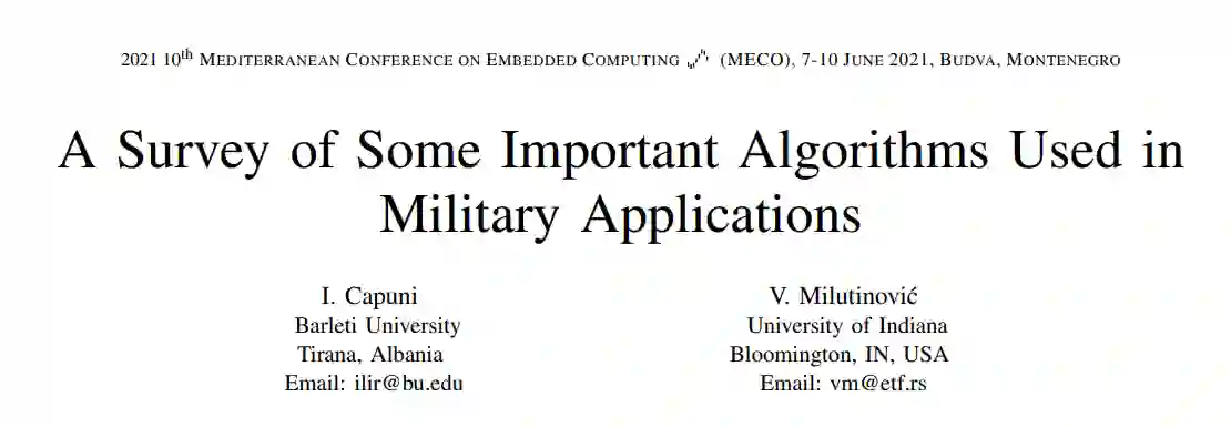 在本文中,我们介绍了十种算法,这些算法被用于核心、战术和支持作战的军事应用中。基础问题的实例,即算法的输入,通常规模很大。因此,有大量的数据需要快速处理,最好是实时的、准确的和可靠的,同时保证信息的保密性和控制,即使在恶劣的条件下操作。