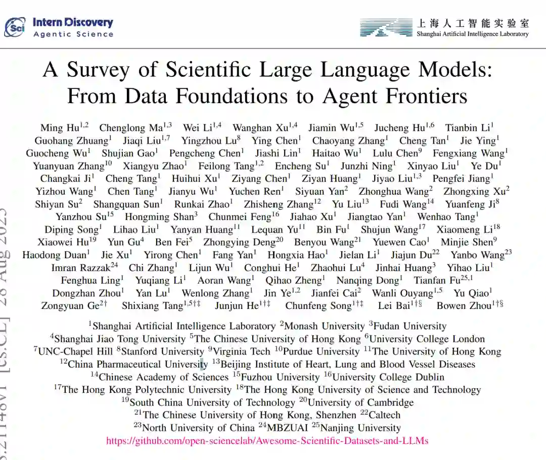 摘要—— 科学大语言模型(Scientific Large Language Models, Sci-LLMs)正在重塑知识在科学研究中的表征、集成与应用方式,然而它们的发展轨迹也受到科学数据复杂性的深刻影响。本综述提出了一种全面的、以数据为中心的综合视角,将 Sci-LLMs 的发展重新框定为模型与其底层数据基质之间的协同进化。我们构建了一个统一的科学数据分类法和科学知识的层次化模型,强调科学语料在多模态、跨尺度以及领域特异性方面所面临的独特挑战,这些特征使其显著区别于通用自然语言处理数据集。我们系统性回顾了近期的 Sci-LLMs,从通用基础模型到各科学科的专用模型,并对 270 余个预训练/后训练数据集进行了深入分析,揭示了 Sci-LLMs 的独特需求——异构的、跨尺度的、充满不确定性的语料,要求具备保持领域不变性和支持跨模态推理的表征方式。在评测方面,我们考察了超过 190 个基准数据集,并追踪了评测范式从静态考试逐步转向过程导向与发现导向的评估协议。基于这些以数据为中心的分析,我们指出科学数据开发中仍然存在的长期问题,并探讨了包括半自动化标注流程与专家验证在内的新兴解决方案。最后,我们展望了一种范式转变,即迈向闭环系统:由 Sci-LLMs 驱动的自主智能体能够主动进行实验、验证,并贡献于一个动态演化的知识库。总体而言,本工作为构建可信赖、可持续进化、并能作为真正科研伙伴的人工智能(AI)系统提供了清晰的路线图,加速科学发现进程。