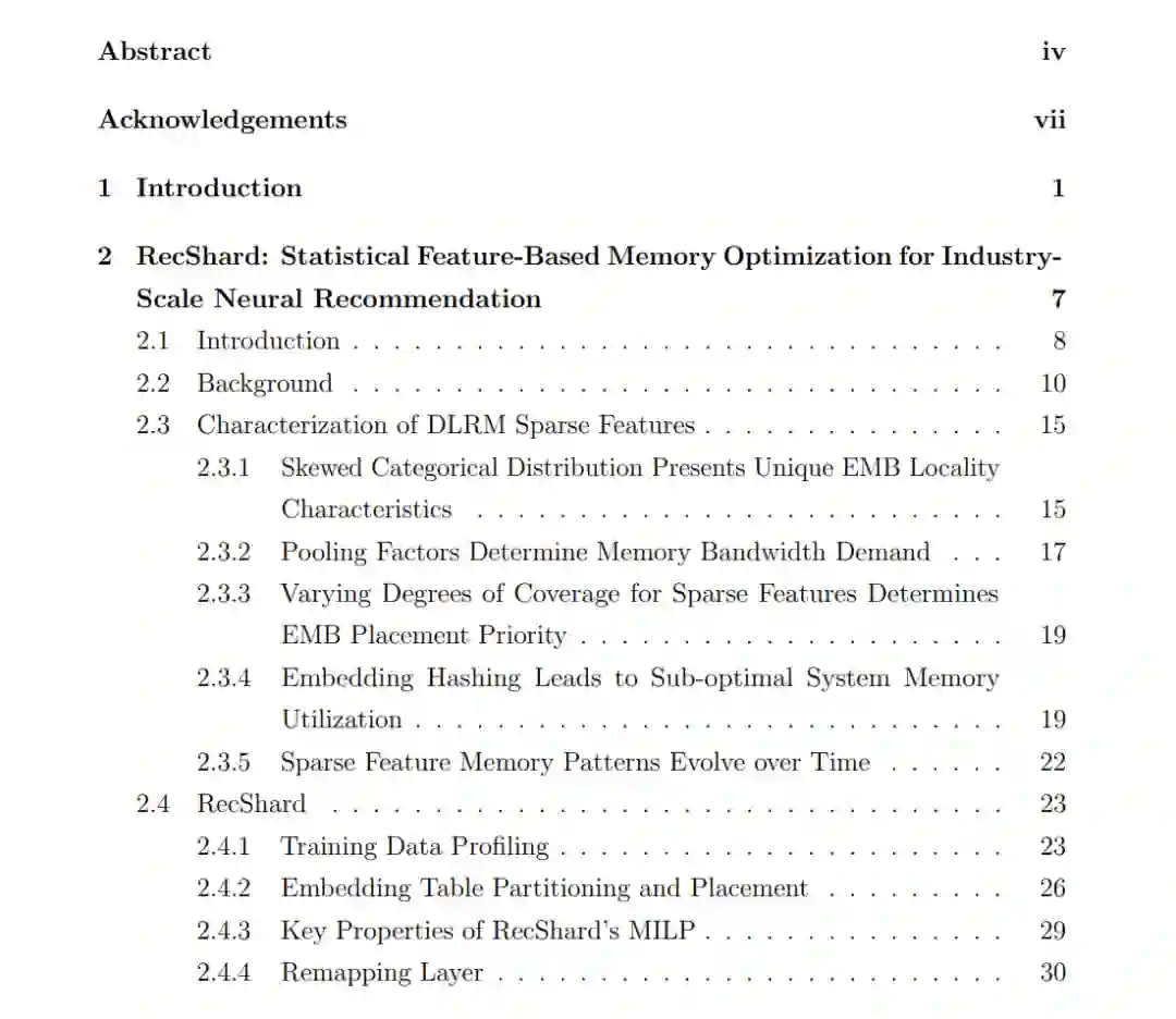 行业规模的DLRMs需要进行分片;然而,偏倚的DLRM训练数据幂律性质导致不精确的划分和放置决策,从而导致系统内存拓扑的负载不均衡。本文的工作为深入分析DLRM的细粒度内存访问模式提供了基础;以及两种基于此基础的新分片技术。这些技术在实际生产数据和系统部署上比之前的最先进技术有了显著改进。