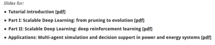 本教程的第一部分侧重于理论。首先修正目前有多少代理使用深度神经网络。然后介绍了神经网络的基本概念,并从功能和拓扑的角度将人工神经网络与生物神经网络进行了比较。我们接着介绍了90年代早期的第一篇关于高效神经网络的论文,这些论文使用稀疏执行或基于不同显著性标准的全连通网络的权值剪枝。然后,我们回顾了近年来一些从全连通网络出发,利用剪枝再训练循环压缩深度神经网络,使其在推理阶段更有效的工作。然后我们讨论另一种方法,即增强拓扑的神经进化及其后续,使用进化计算来增长有效的深度神经网络。