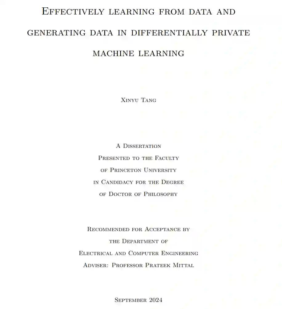 机器学习模型容易受到多种利用训练模型数据泄露的攻击。差分隐私(DP)是量化隐私风险并提供对抗攻击的可证明保证的黄金标准。然而,在差分隐私下训练机器学习模型通常会导致显著的效用下降。本论文研究如何在差分隐私机器学习中有效地从数据中学习并生成数据。