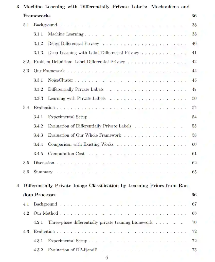 为了在隐私保护的方式下有效地从数据中学习,首先需要识别可以利用的先验信息类型。首先,我们研究了标签-DP 设置,即特征信息公开,而标签信息私有。我们通过利用公共特征来减少噪声的添加,进而降低噪声的影响,以此来提高标签-DP 下的模型效用。其次,我们研究了如何利用合成图像来改进差分隐私图像分类。尽管这些合成图像是在没有访问真实图像的情况下生成的,并且对非隐私训练帮助有限,我们发现这些合成图像可以为差分隐私图像分类提供更好的先验。我们进一步研究了如何最大化这些合成先验的使用,以充分释放它们在改进隐私训练中的潜力。