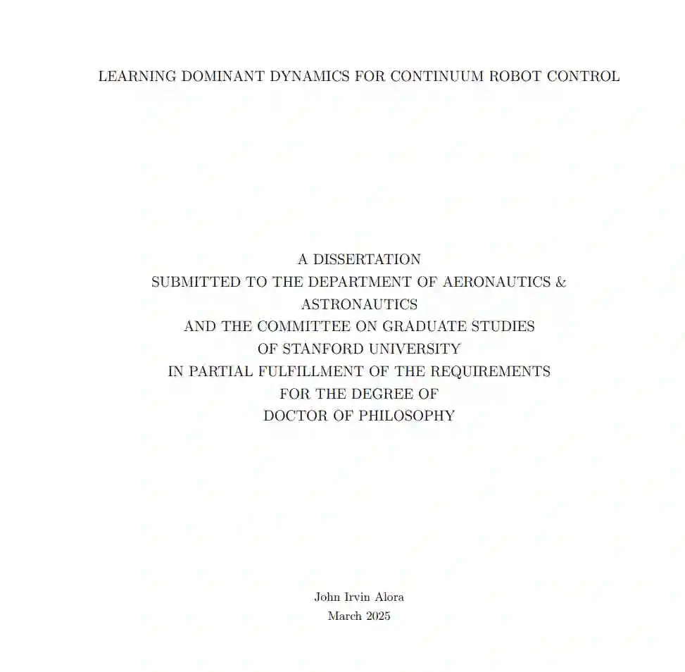 连续体机器人模拟生物体的灵活性与灵巧性,具有在地面及外太空应用中带来变革性突破的潜力。尽管这类能力伴随着建模与控制上的巨大挑战,连续体机器人高度耗散的特性使得其行为可由低维、主导动力学所解释。尽管已有大量研究试图揭示这些主导动力学,现有方法往往未能构建出能准确捕捉这些特性的模型,从而限制了在多样化和对安全性要求极高的任务中实现精确控制的能力。