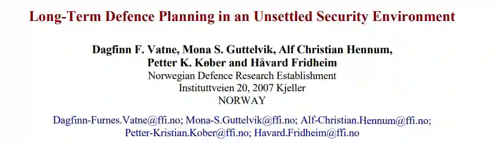FFI为挪威的长期国防规划提供作战研究支持。这种支持是基于一个场景组合,旨在跨越挪威国防在未来20年可能参与的任务范围。挪威武装部队的能力要求根据这些场景进行分析。2022年2月俄乌战争将改变未来几年欧洲的安全局势。这也将对与挪威长期防务规划相关的场景类型产生影响。为了发展一支灵活的部队,能够处理各种各样的安全挑战,了解这种不确定性及其后果是至关重要的。本文将介绍在一个不断变化和不稳定的安全环境中审查场景组合的方法。已经确定了最重要的战略参数,以及可能的趋势和未来发展。这些构成了一套可供选择的未来战略背景,在这个背景下,可以系统地评估不同类型场景的相关性。该方法使能够定期或在观察到趋势发生变化时重新审视和评估场景的相关性。