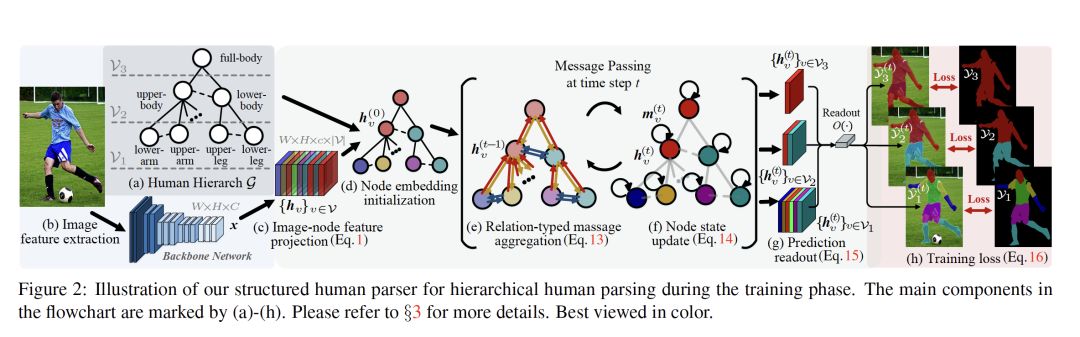 摘要:人体解析(Human parsing)是为了像素级的人类语义理解。由于人体是具有层次结构的,因此如何对人体结构进行建模是这个任务的中心主题。围绕这一点,我们试图同时探索深度图网络的表示能力和层次化的人类结构。在本文中,我们有以下两个贡献。首先,首次用三个不同的关系网络完整而精确地描述了分解、组合和依赖这三种部件关系。这与以前的解析方式形成了鲜明的对比,之前的解析器只关注关系的一部分,并采用类型不可知(type-agnostic)的关系建模策略。通过在关系网络中显式地施加参数来满足不同关系的具体特性,可以捕捉到更具表现力的关系信息。其次,以前的解析器在很大程度上忽略了循环的人类层次结构上的近似算法的需求,而我们则通过将具有边类型的通用信息传递网络与卷积网络同化来解决迭代推理过程。通过这些努力,我们的解析器为更复杂、更灵活的人际关系推理模式奠定了基础。在五个数据集上的综合实验表明,我们的解析器在每个数据集上都具有最好的表现。