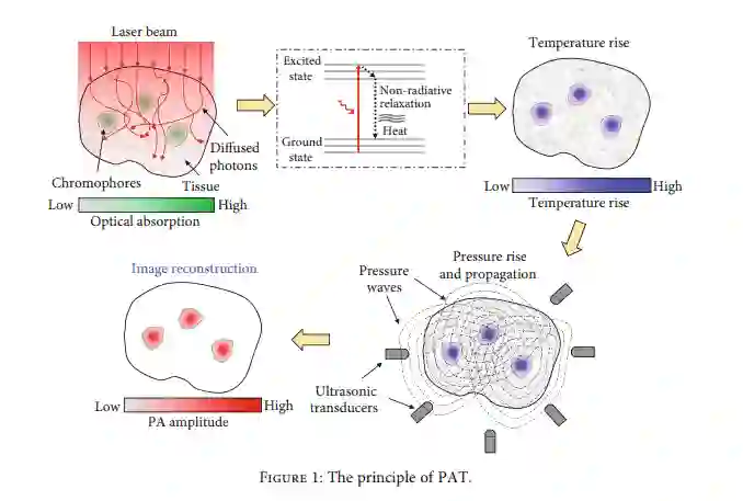 光声断层扫描(PAT)结合了光学成像的分子对比和深部组织超声成像的高空间分辨率,在基础生物科学、临床前研究和临床试验中有着广泛的应用。近年来,PAT在技术创新、临床前应用和临床转化方面取得了巨大的进展。本文重点综述了近年来PAT的研究进展,包括用于小动物和人类成像的先进PAT系统、用于分子成像的新工程光学探针、用于生物组织无标记成像的广谱PAT、高通量快照光声地学、并结合机器学习进行图像重建和处理。我们展望PAT在生物医学方面将有进一步的技术发展和更有影响的应用。