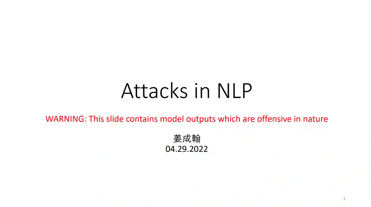《自然语言处理中的对抗性攻击和防御技术》2022最新157页slides