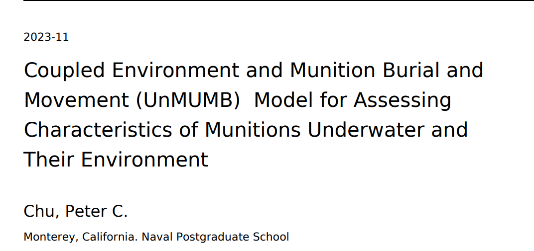 目标是为弹药响应(MR)界开发一个有效的海底环境和 UnMUMB 耦合模型,以评估环境并预测弹药的流动性。由于在沉积物类型、海底形态和水动力条件等各种环境特征下,弹药的埋藏和移动情况各不相同,因此及时预测海底环境和弹药的移动情况,包括其位置和埋藏情况,对于评估水下弹药及其环境的特征至关重要。