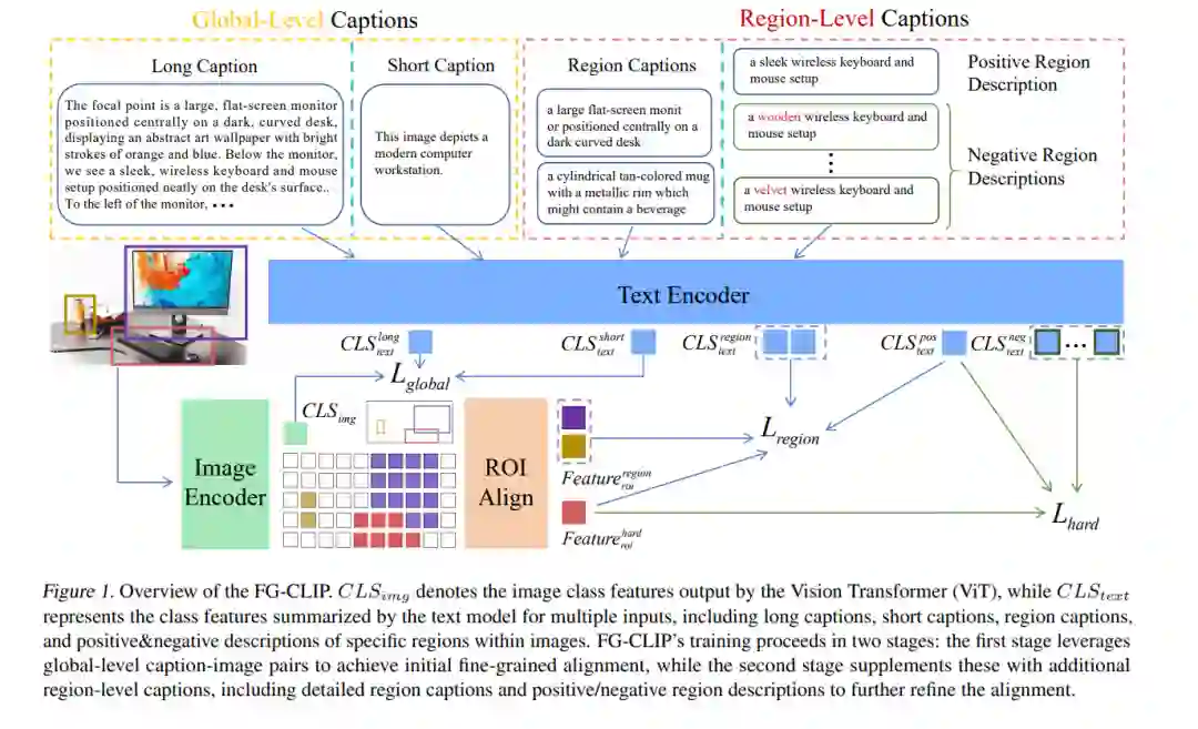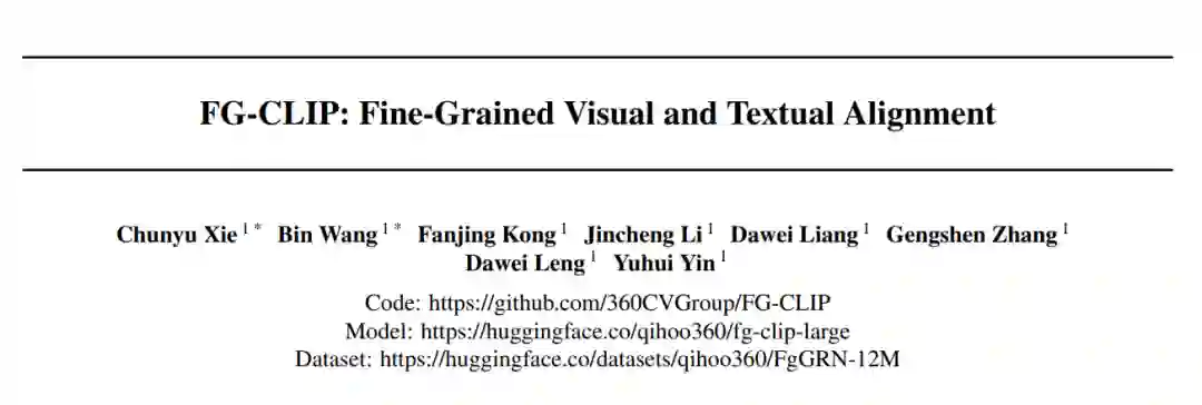 **对比语言-图像预训练(CLIP)**在图文检索和零样本分类等多模态任务中表现出色,但由于其侧重于粗粒度的简短图文描述,在细粒度理解方面存在不足。为了解决这一问题,我们提出了 细粒度CLIP(FG-CLIP),通过三项关键创新提升细粒度理解能力。 首先,我们利用大规模多模态模型生成了 16亿条长文本描述-图像对,以捕捉全局语义细节。其次,我们构建了一个高质量数据集,包含 1200万张图像和4000万个区域级别的边界框,并与详细文本描述对齐,从而确保精确、具有上下文信息的表示。第三,我们引入了 1000万个具有挑战性的细粒度负样本,提升模型区分细微语义差异的能力。 我们构建了一个综合性数据集,命名为 FgGRN,将高质量的区域级注释与具有挑战性的细粒度负样本整合在一起,并为这些数据精心设计了相应的训练方法。 大量实验表明,FG-CLIP 在多种下游任务中均优于原始的 CLIP 和其他最新方法,包括细粒度理解、开放词汇物体检测、图文检索以及通用多模态基准测试。这些结果突显了 FG-CLIP 在捕捉细粒度图像细节和提升整体模型性能方面的有效性。数据、代码和模型已开源,地址为:https://github.com/360CVGroup/FG-CLIP。