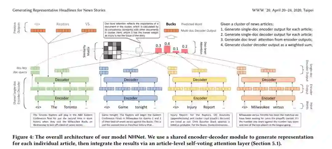 每天都有数以百万计的新闻文章在网上发布,这对读者来说是难以承受的。将报道同一事件的文章分组成新闻报道是帮助读者进行新闻消费的一种常见方式。然而,如何高效、有效地为每一个故事生成一个有代表性的标题仍然是一个具有挑战性的研究问题。文档集自动摘要的研究已经有几十年的历史了,但是很少有研究关注于为一组文章生成具有代表性的标题。摘要的目的是用最少的冗余捕获最多的信息,而标题的目的是短篇幅捕获由story文章共同共享的信息,并排除对每一篇文章过于具体的信息。在这项工作中,我们研究的问题,产生具有代表性的新闻故事标题。我们开发了一种远监督方法来训练大规模的没有任何人工标注的生成模型。这种方法集中在两个技术组件上。首先,我们提出了一个多层次的预训练框架,该框架融合了大量不同质量的未标记语料库。我们证明,在这个框架内训练的模型比那些使用纯人类策展语料库训练的模型表现得更好。其次,我们提出了一种新的基于自投票的文章注意层来提取多篇文章共享的显著信息。我们证明了该层模型对新闻中潜在的干扰具有较强的鲁棒性,无论是否存在干扰,其性能都优于已有的基线。我们可以通过合并人类标签来进一步增强我们的模型,我们展示了我们的远监督方法,这大大减少了对标签数据的需求。