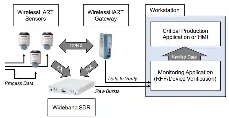 图 1. 基于 RFF 的 WirelessHART 设备认证的设想用例。我们的实验装置模仿了这种配置。